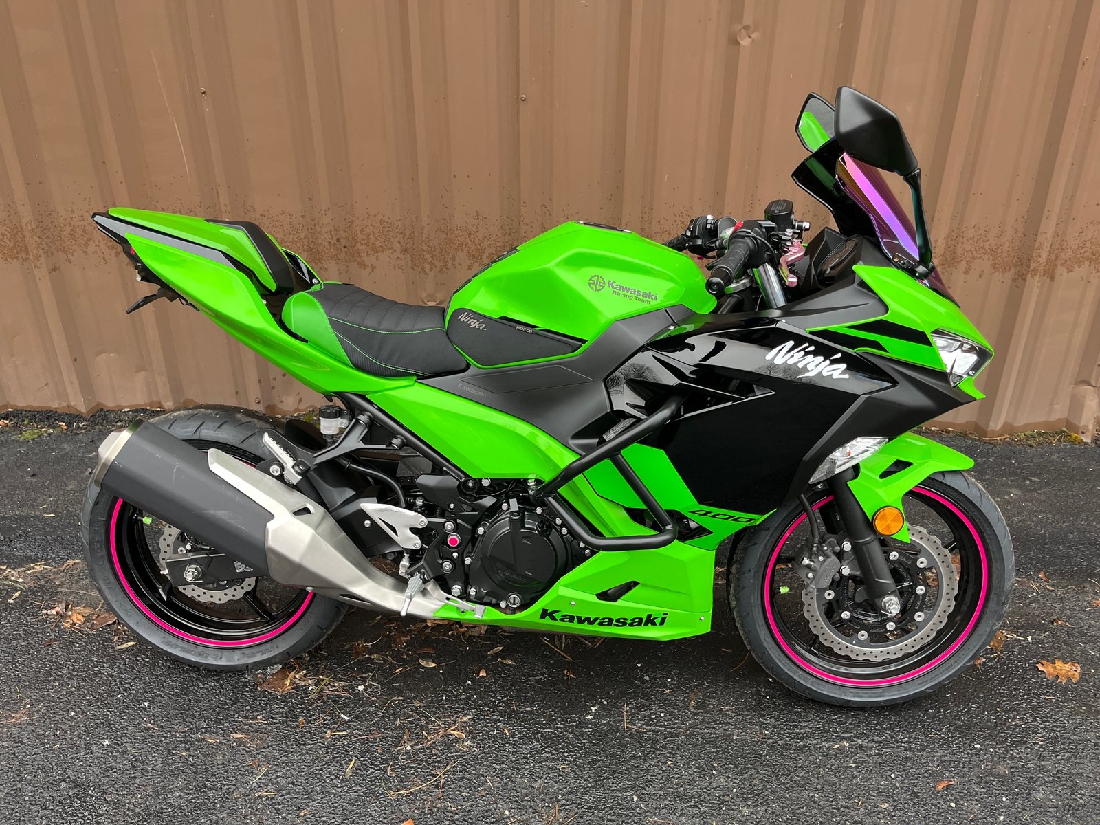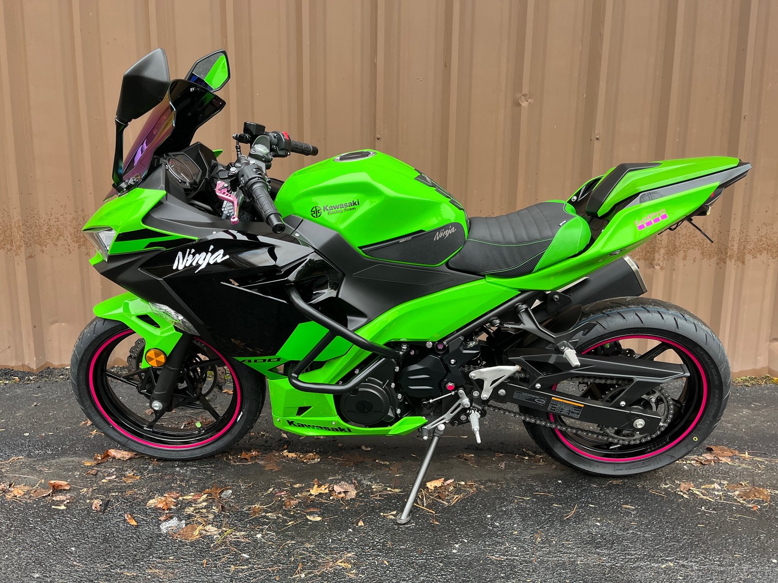 2023 Kawasaki NINJA 400. 13,955 miles. 400cc. Twin Cylinder Engine. EFI. Liquid Cooled. Assist and Slipper Clutch. 6 Speed manual Transmission. Touring Seat. Shown with Rear Seat Cowl (rear seat also included). Rear Fender Eliminator. Rear Turn Signals Integrated into the Taillight. Fairing Guards (cage). Tank Pads. Dark Windshield. Under Glow Lights. New Tires. $4,499 cash or financing. $4,634 credit or debit card.